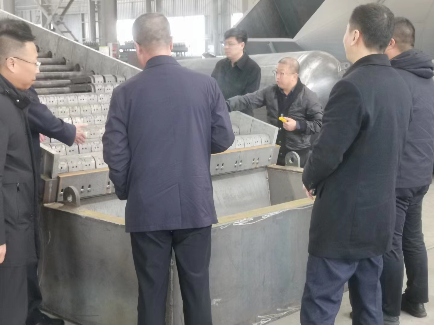 烏蘭察布在旗長(zhǎng)和副旗長(zhǎng)帶領(lǐng)當(dāng)?shù)馗鱾€(gè)局領(lǐng)導(dǎo)來(lái)公司考察日處理80噸生活垃圾爐排爐焚燒設(shè)備。